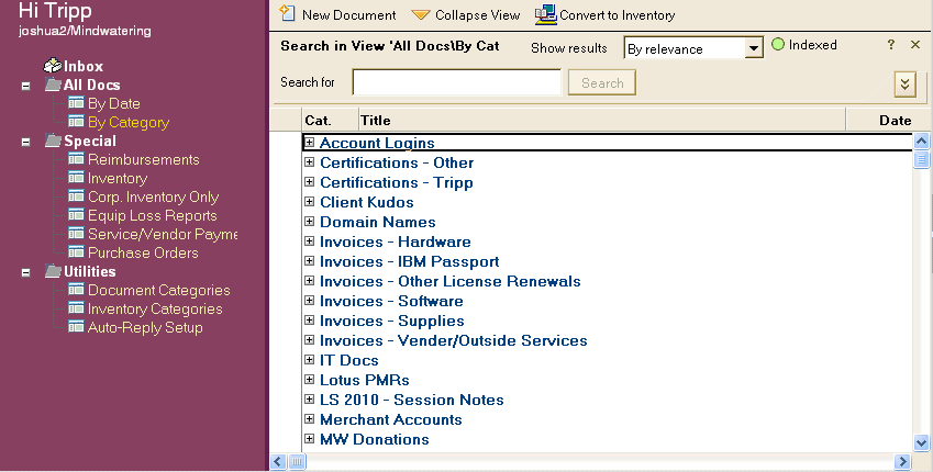 - Under Utilities, select the Documents Categories view.