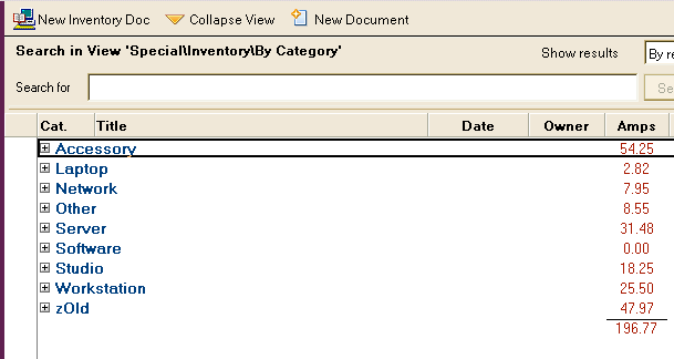 Inventory Documents allow you to simply inventory assets. Includes power consumption for either load calculations on back-up power or LEED type power calculations.