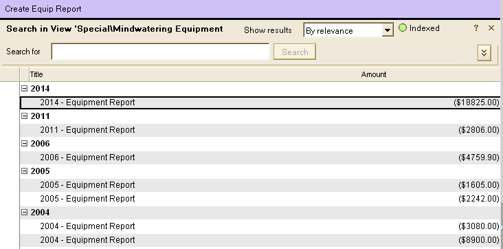 Equipment Reports let you list for accounting purposes equipment bought each year or trash/sold each year.