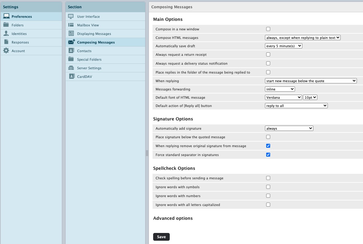 Switch mail to default the composing of new messages from plain text to HTML (MIME):