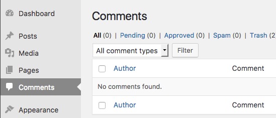 - The Trash filter shows you comments you have moved to Trash from the other All, Pending, and Approved views. Use this filter to get to the button to Empty Trash to remove all the test or bad comments you wish to finally delete.