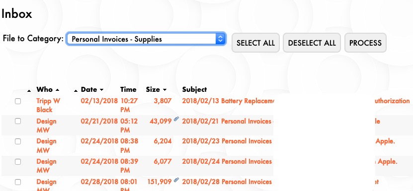 E-mails are received as they are sent by the users into the document repository or by mail-rules set by a Domino administrator. Emails are auto-filed within an hour of being received. In other words, the filing agent runs hourly. Ideally, all documents coming in would have subjects that are unique enough to facilitate auto-filing.